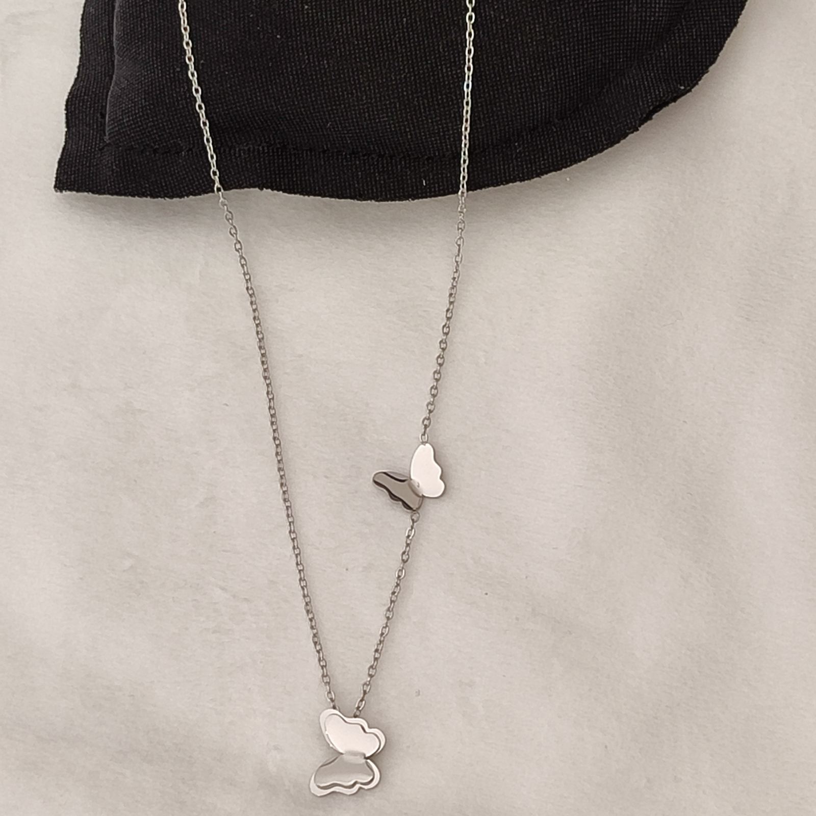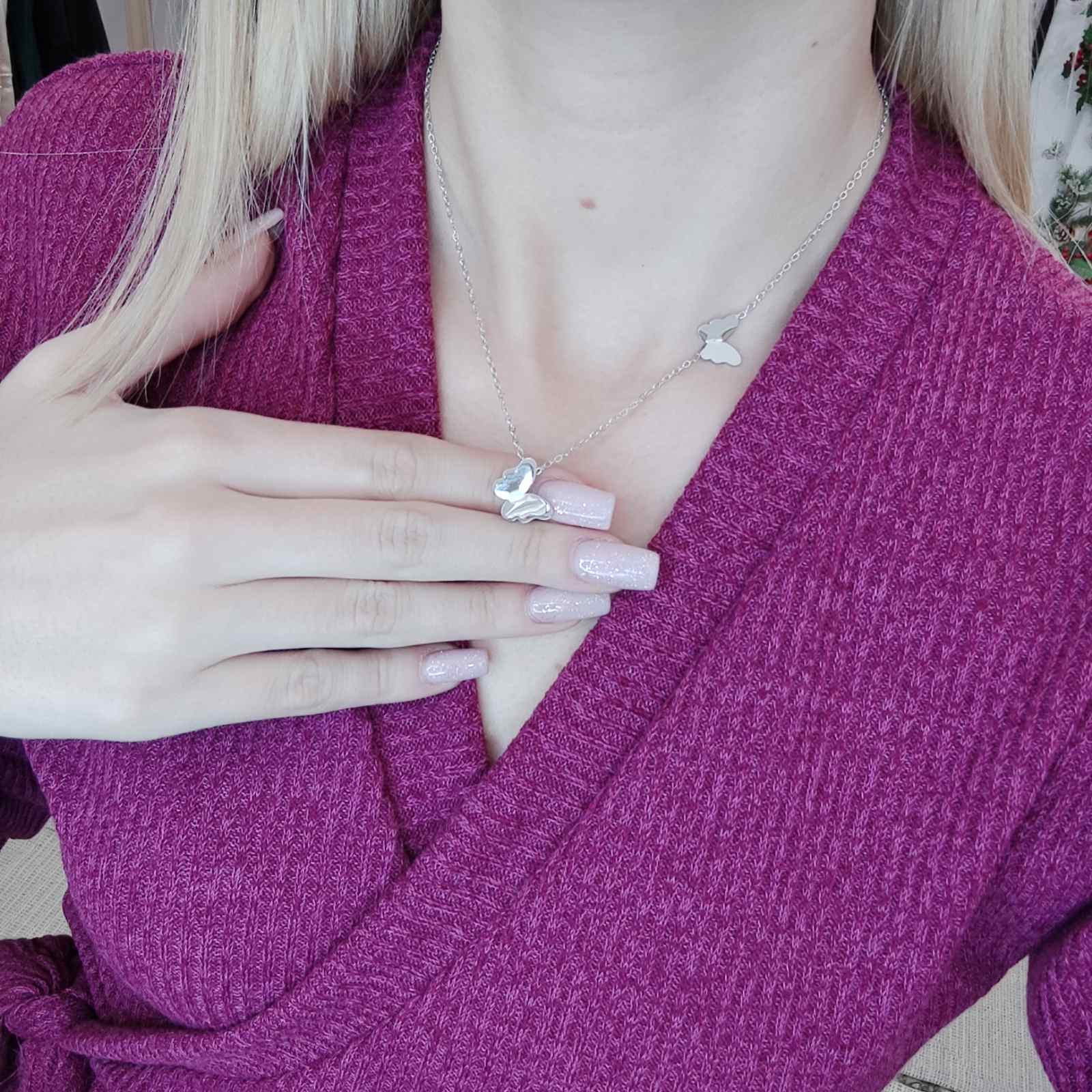 Ατσάλινη αλυσίδα με πεταλούδες σε ασημί απόχρωση. Ιδανικό για όλες τις περιστάσεις. Δεν προκαλούν αλλεργίες και δεν μαυρίζουν.
