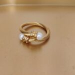 Ατσάλινο δαχτυλίδι με πέρλα σε χρυσή απόχρωση.