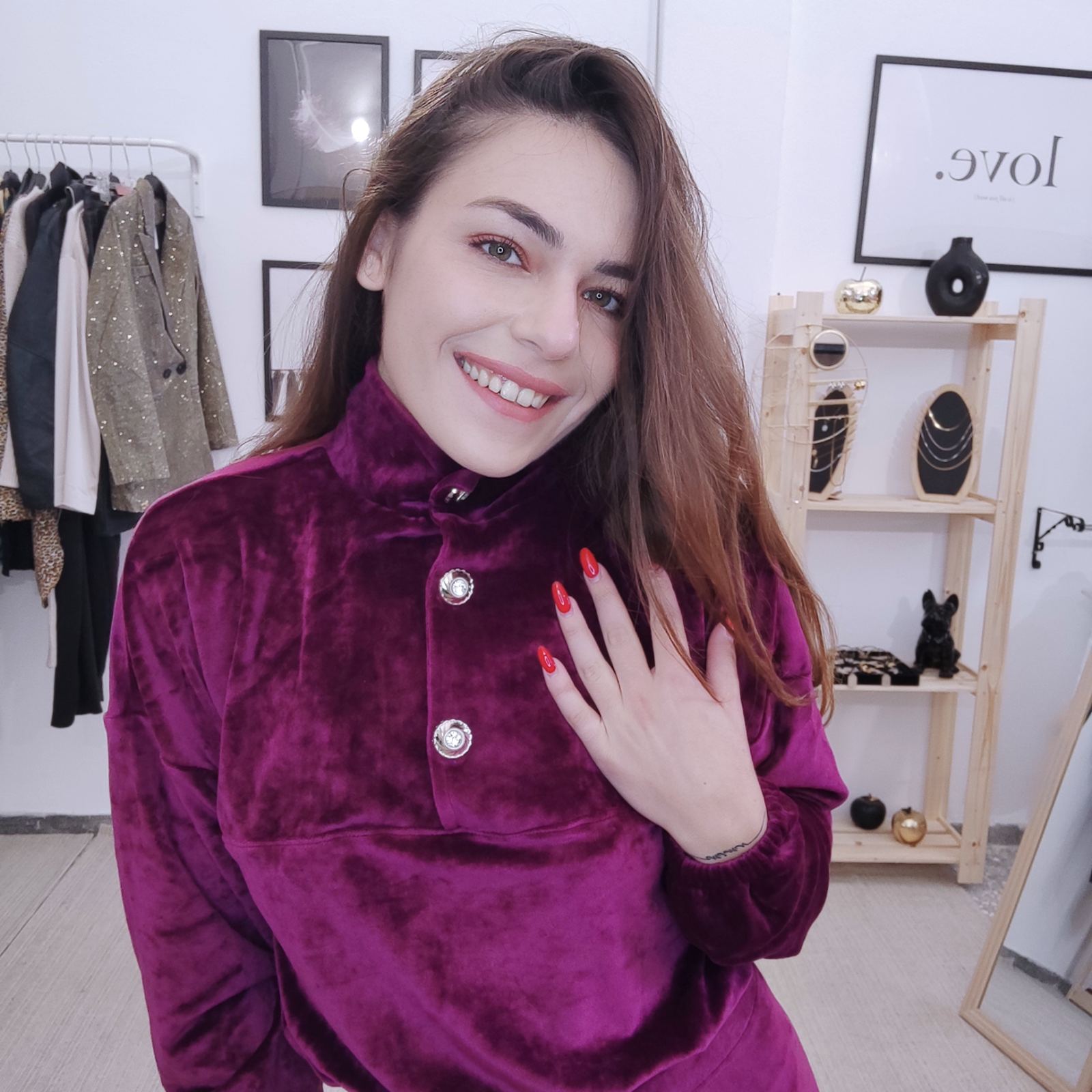 Μπλούζα velvet με ασημί κουμπιά και λάστιχο σε 3 αποχρώσεις. Ελληνικής παραγωγής.