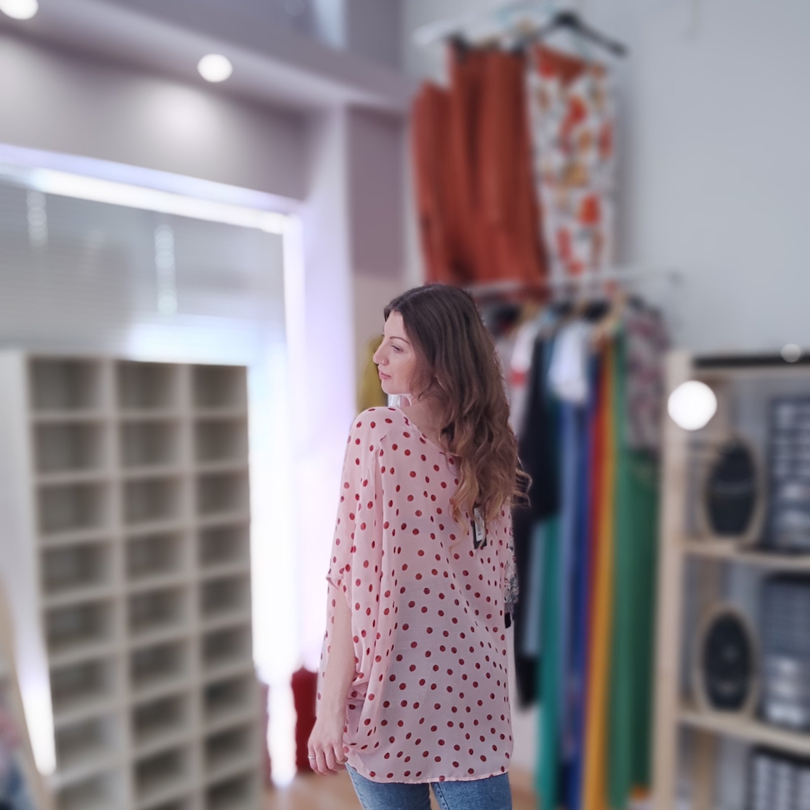 Μπλούζα oversized με λαιμόκοψη πουά ροζ. One size. 100% POLYESTER.