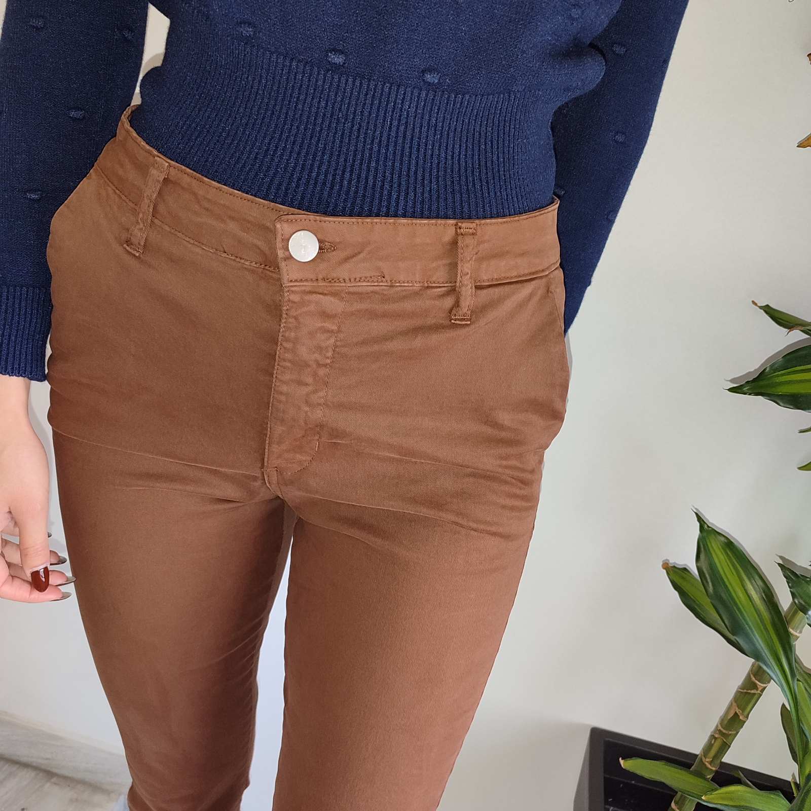 Παντελόνι chinos camel με τσέπες, 98% COTTON & 2% ELASTAN. Ιταλικής παραγωγής.