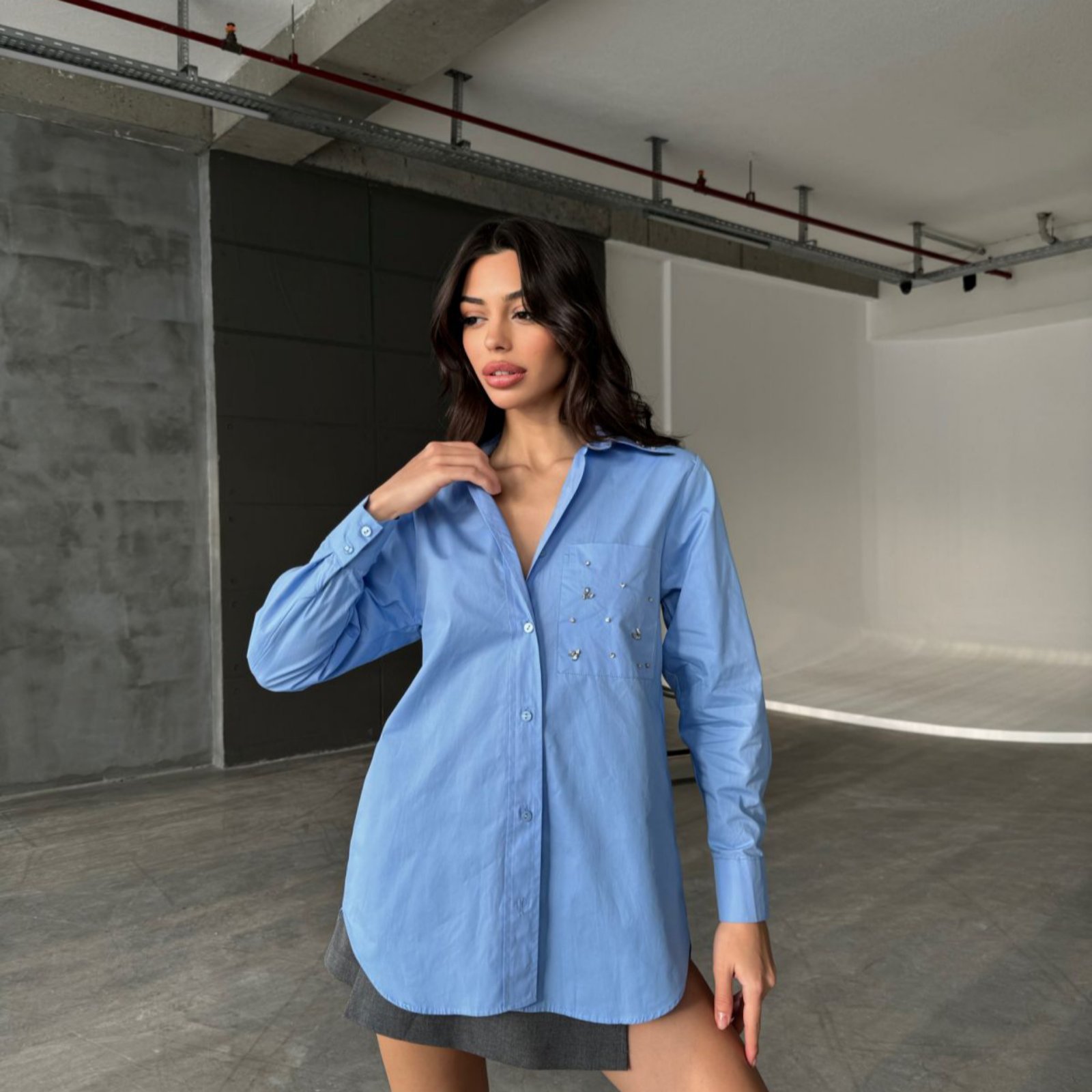 Πουκάμισο oversized με strass στον γιακά & στην τσέπη. Διαθέσιμα νούμερα S/M/L.
