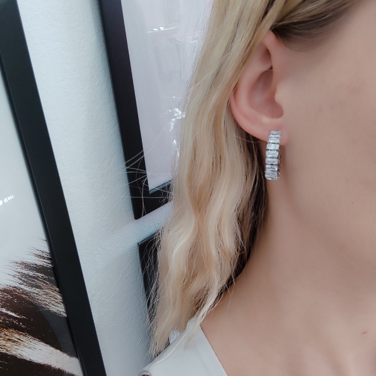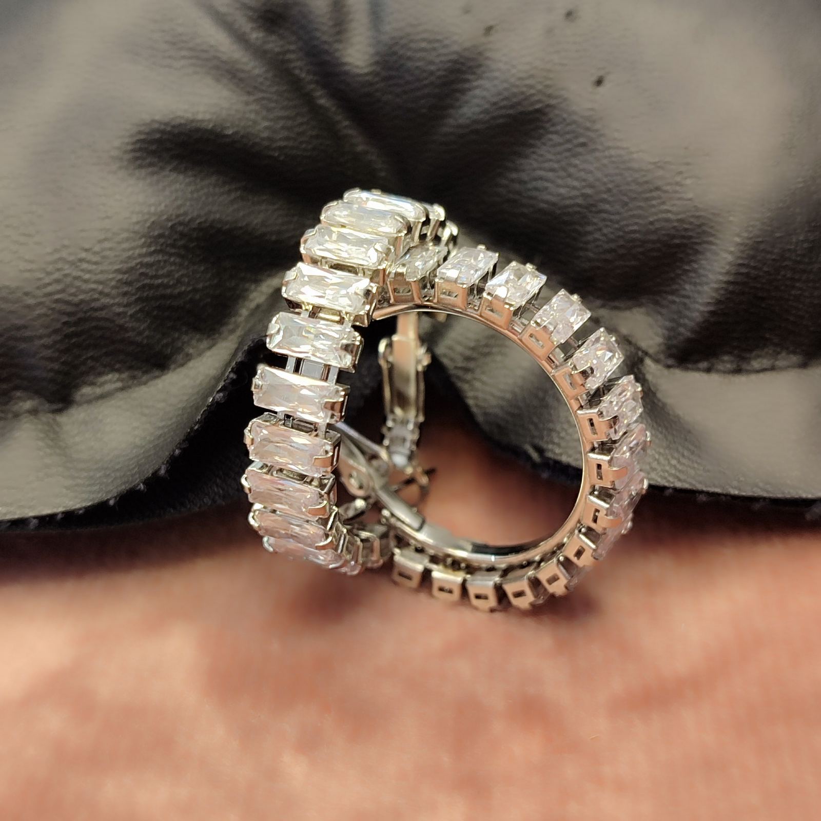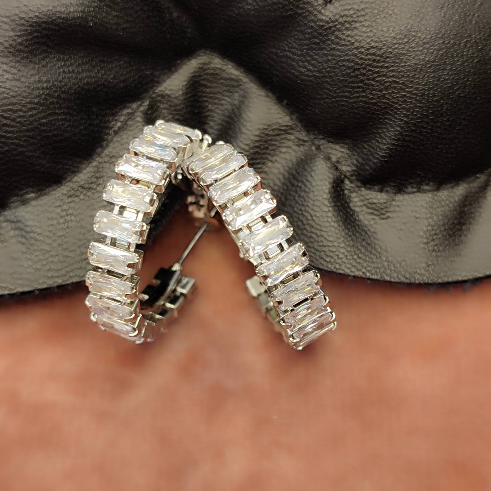 Ατσάλινα σκουλαρίκια κρίκοι με strass.