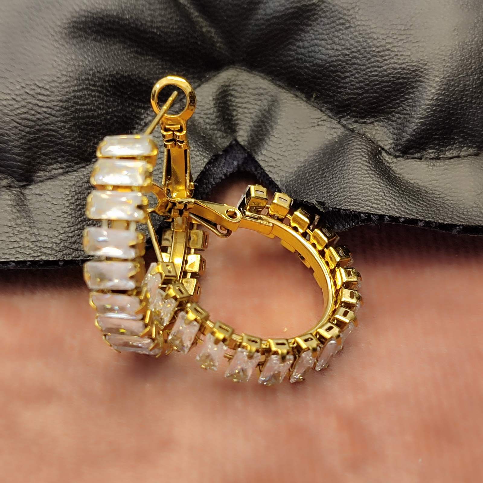 Ατσάλινα σκουλαρίκια κρίκοι με strass σε 2 αποχρώσεις χρυσό και ασημί. Δεν προκαλούν αλλεργίες και δεν μαυρίζουν.