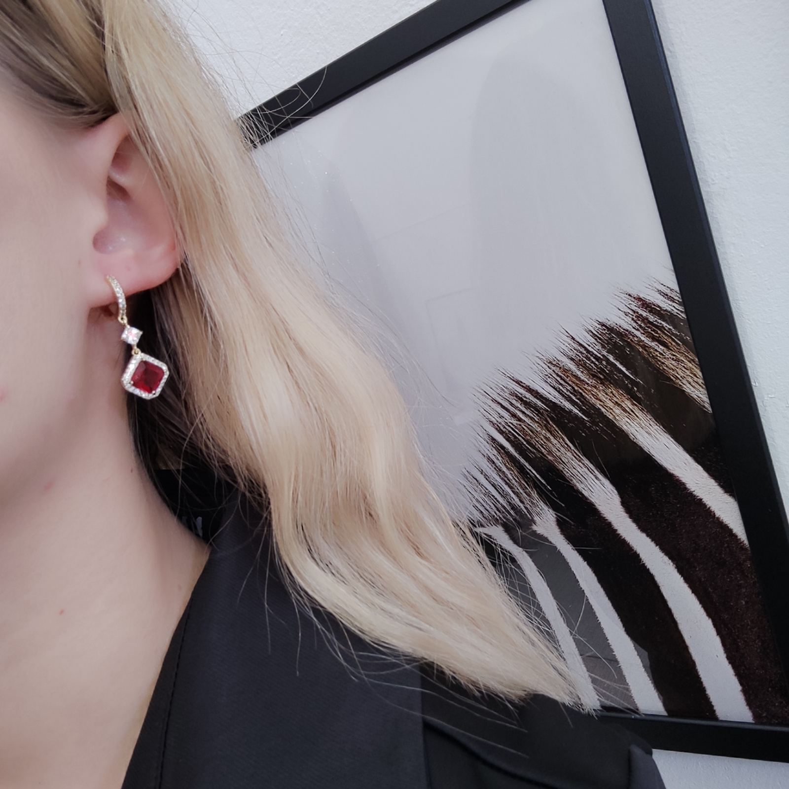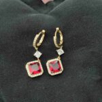 Σκουλαρίκια μικρά κρεμαστά σε 2 αποχρώσεις πέτρας κόκκινο και ροζ.