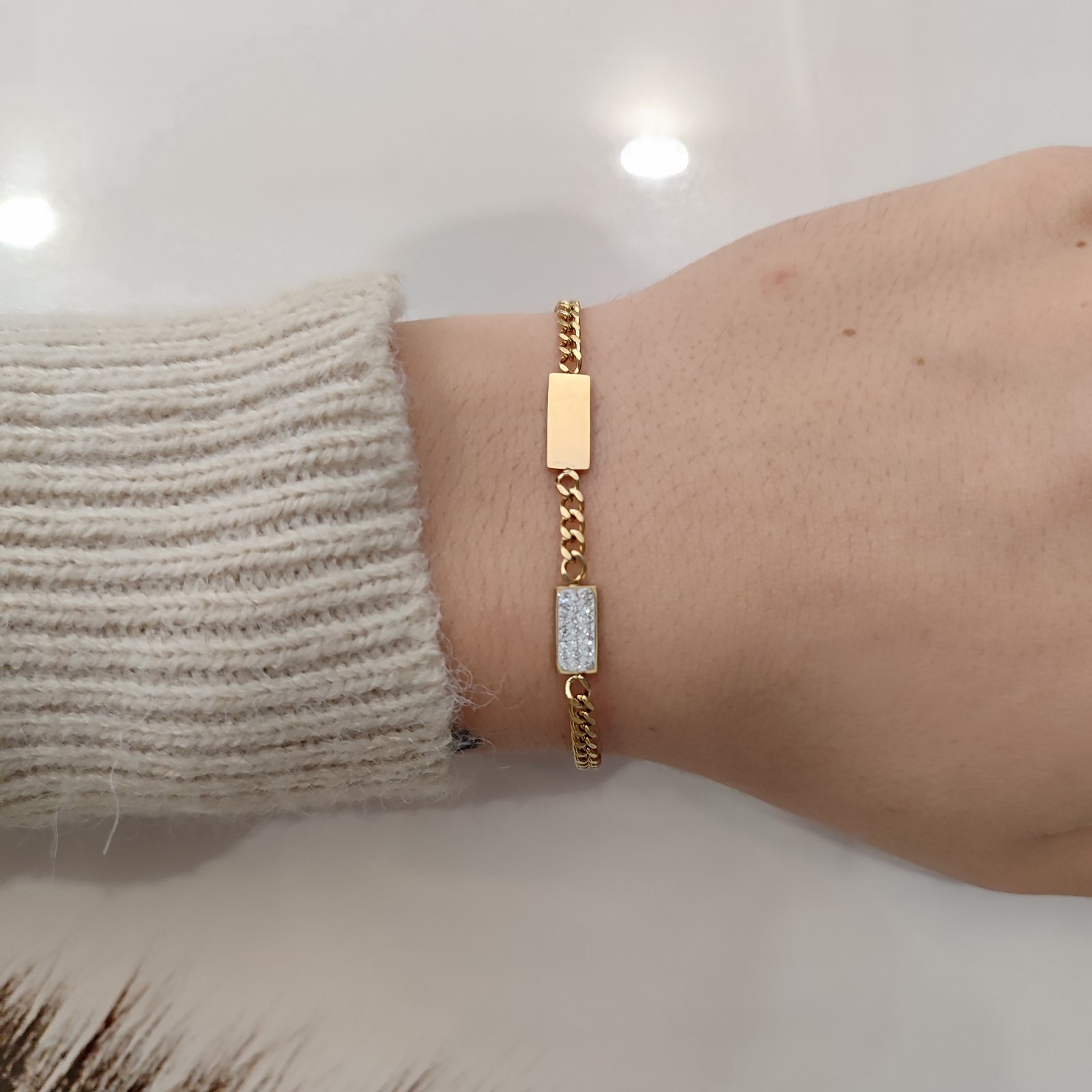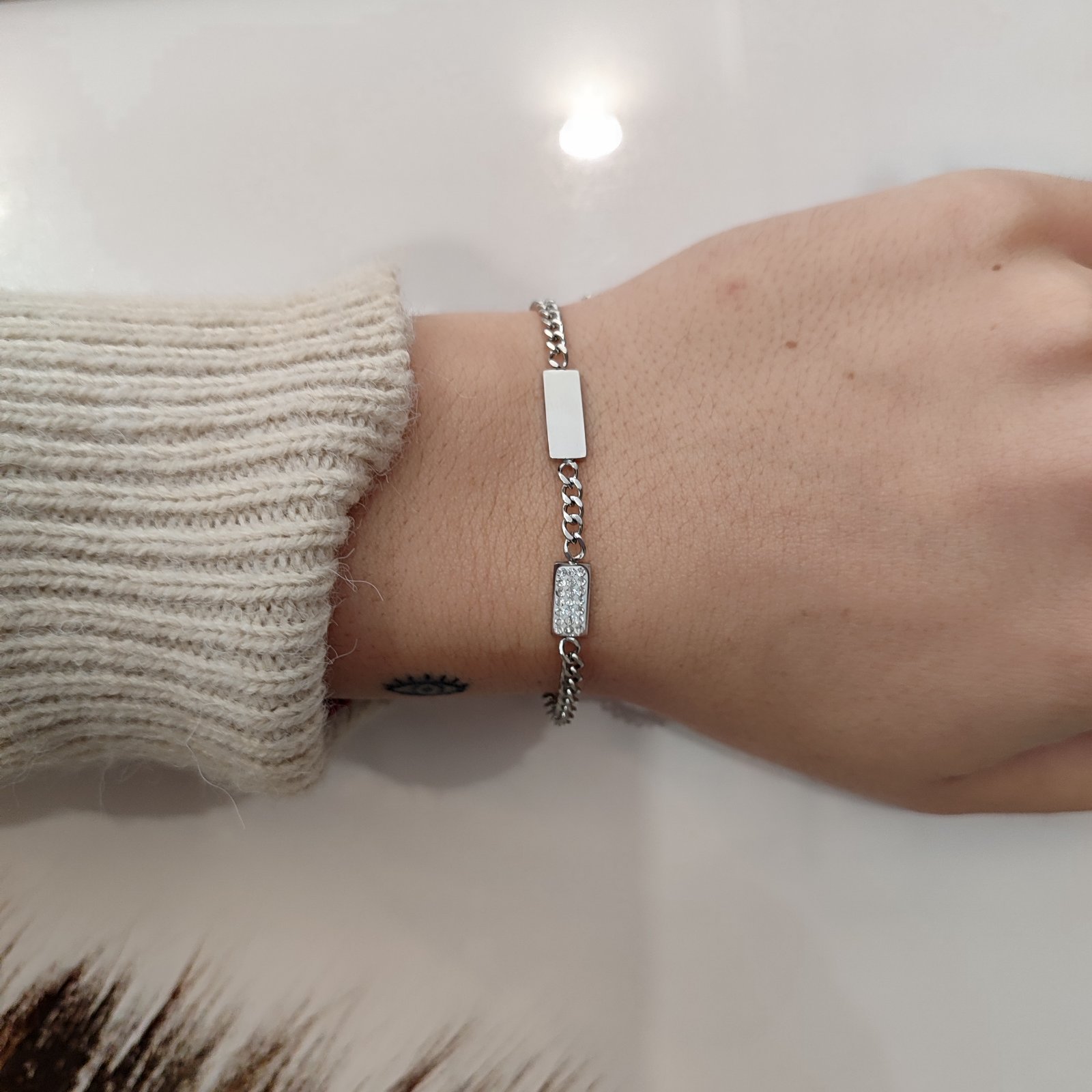Ατσάλινο βραχιόλι αλυσίδα με strass σε 2 αποχρώσεις χρυσό και ασημί. Δεν προκαλούν αλλεργίες και δεν μαυρίζουν.