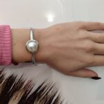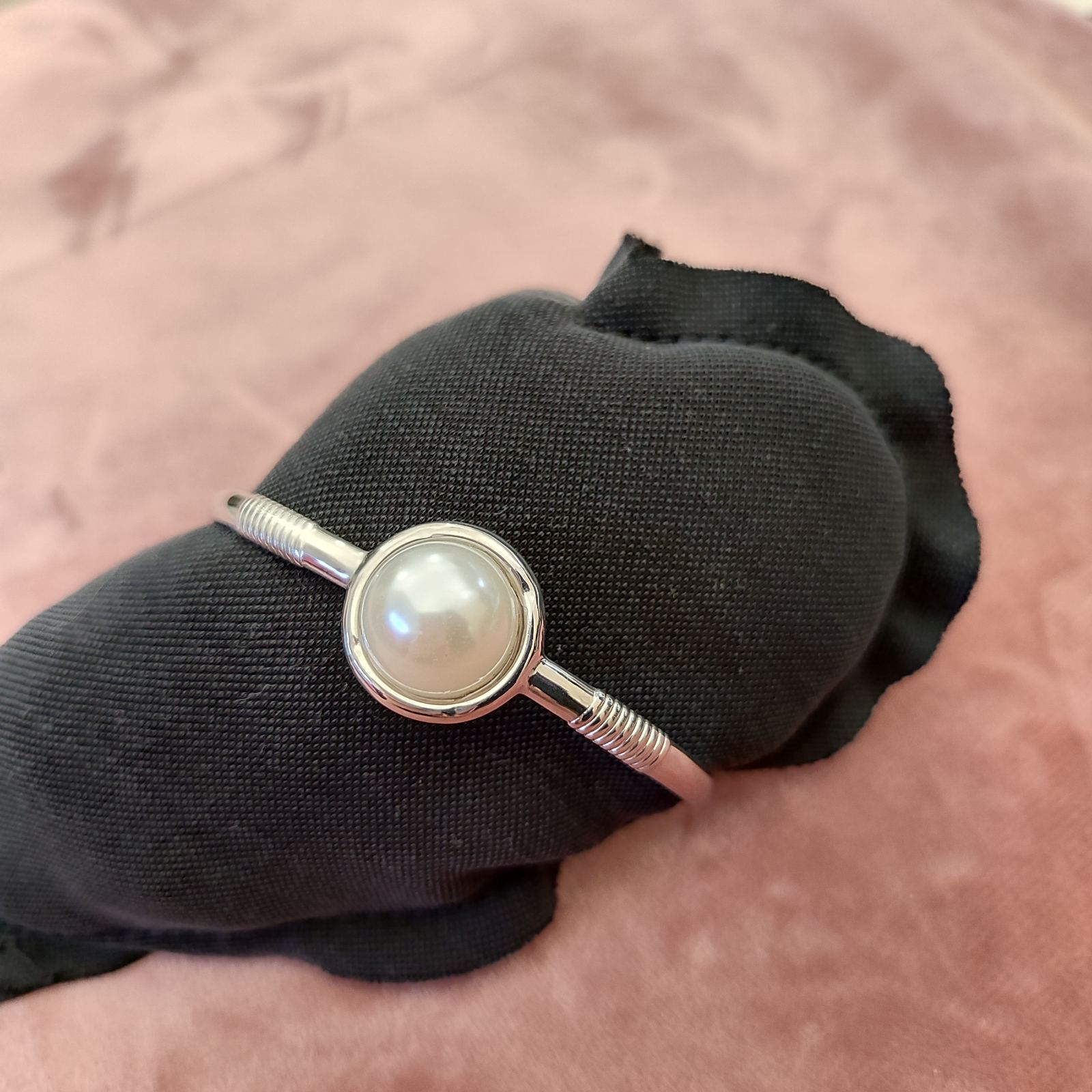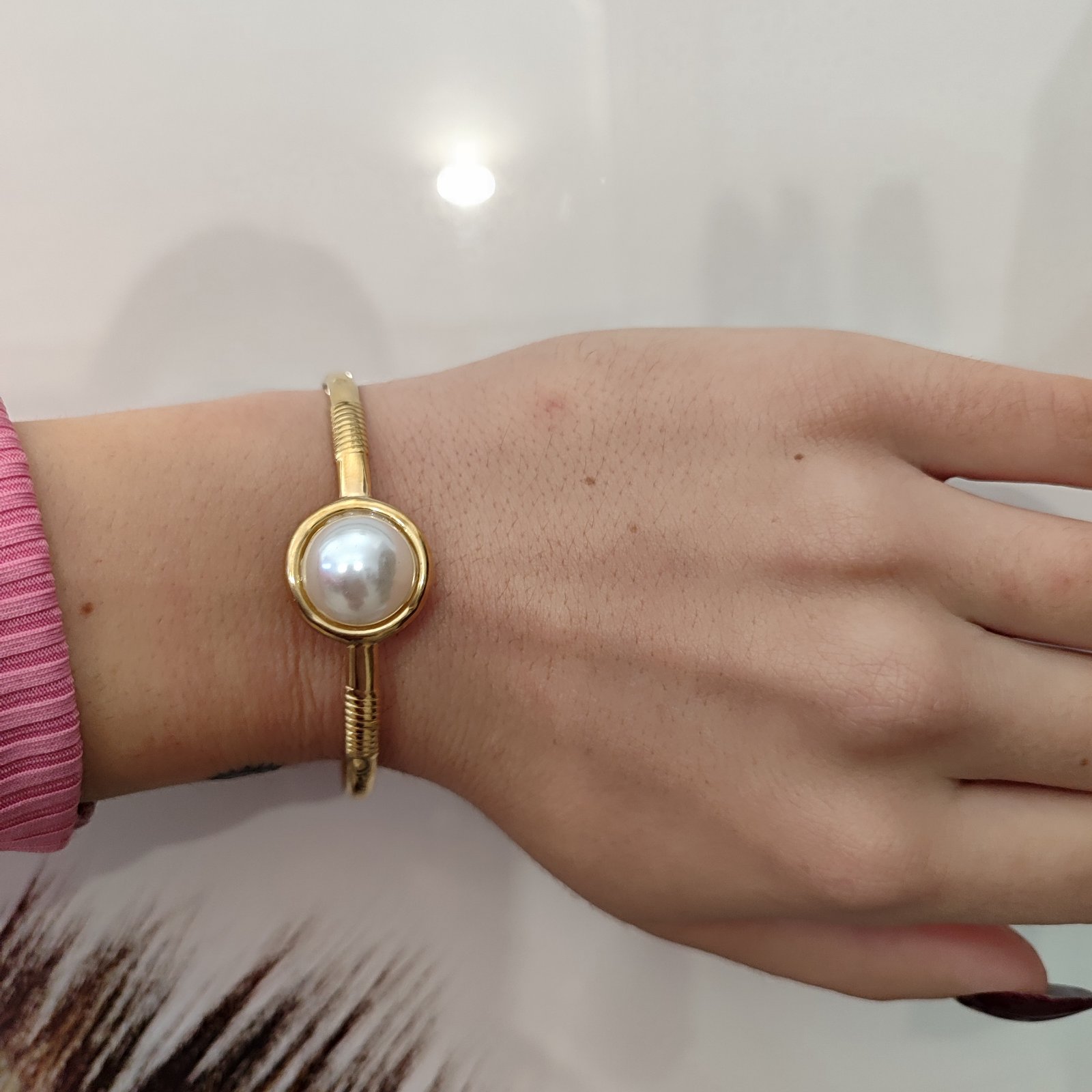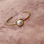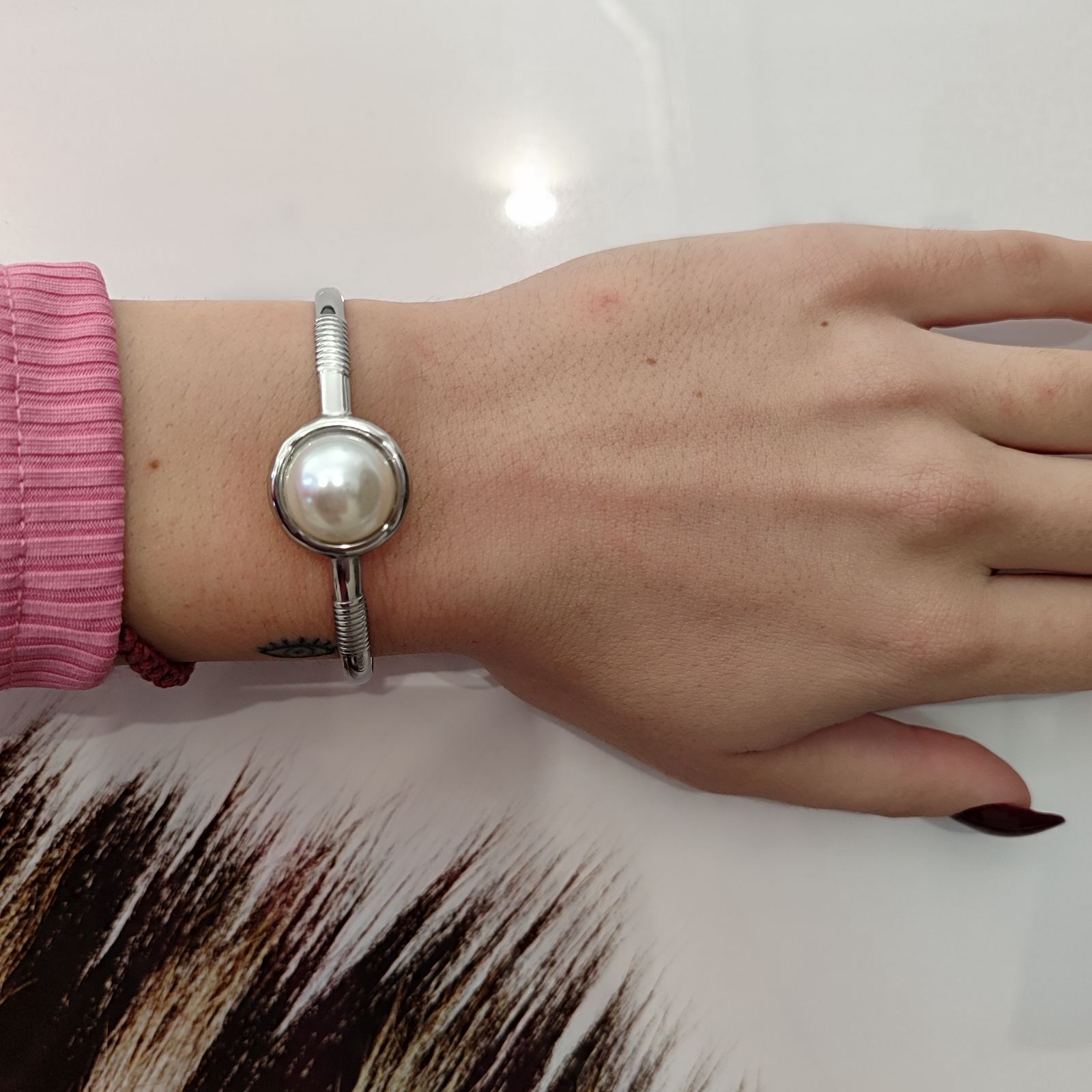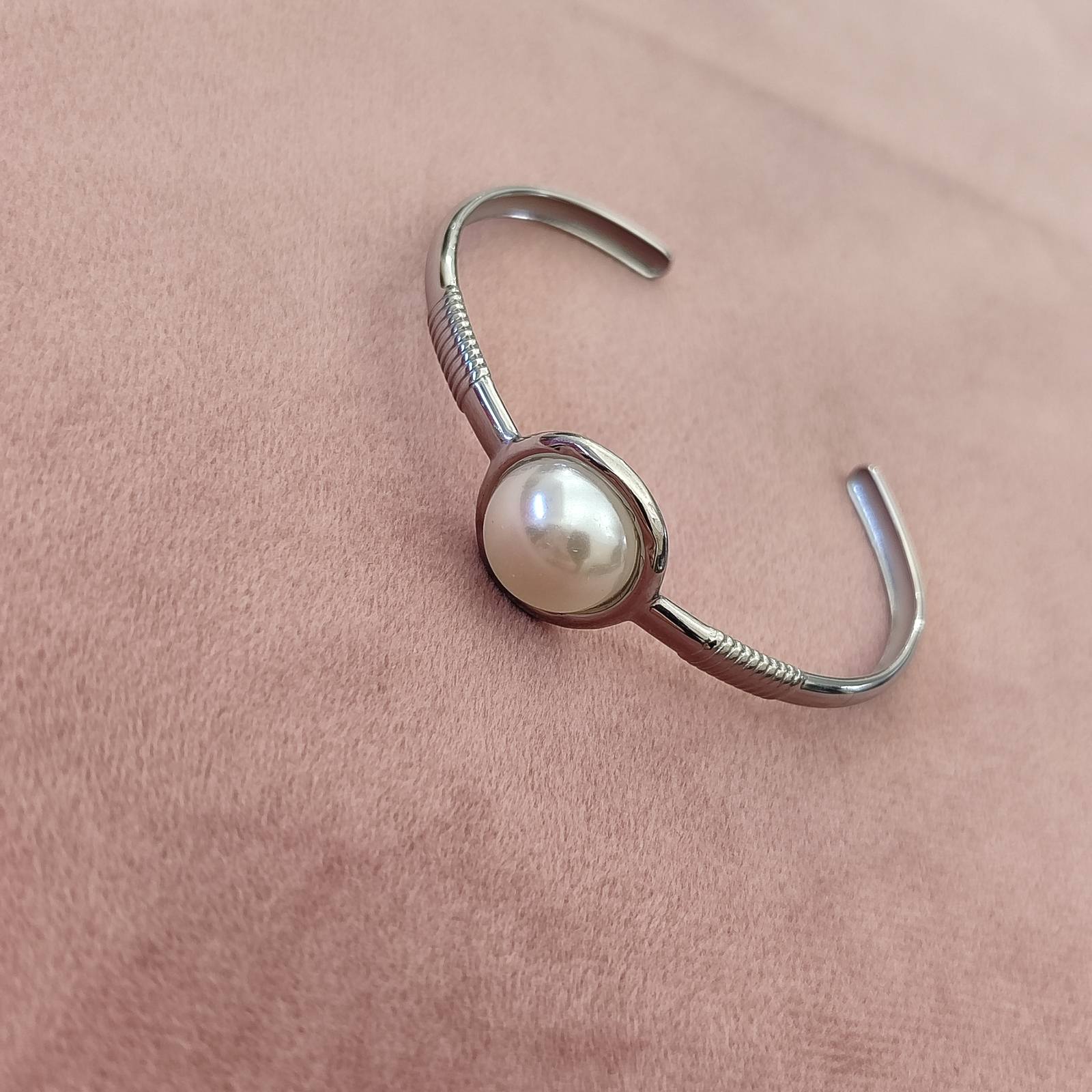 Ατσάλινο βραχιόλι-χειροπέδα με πέρλα.