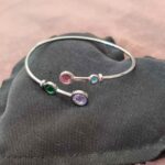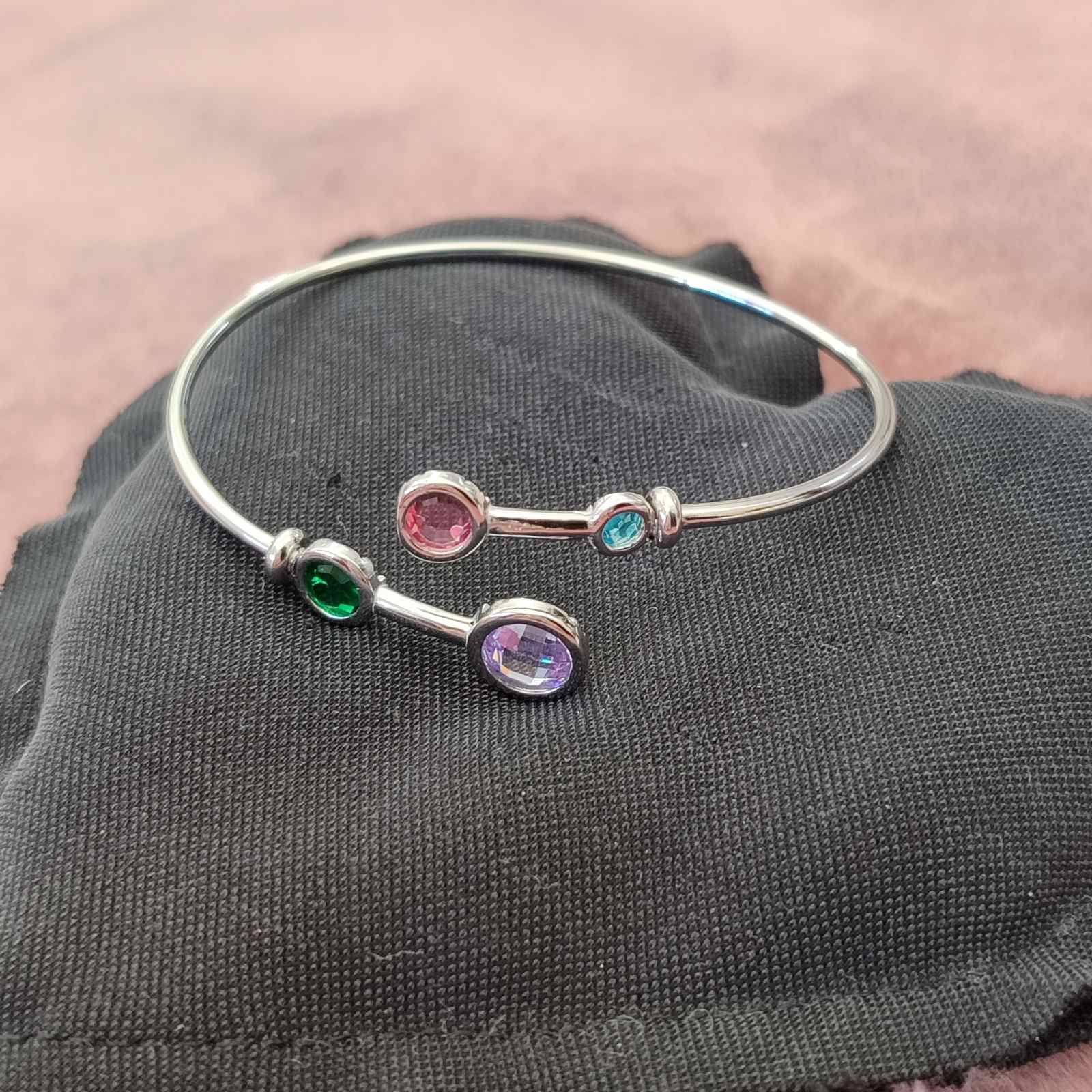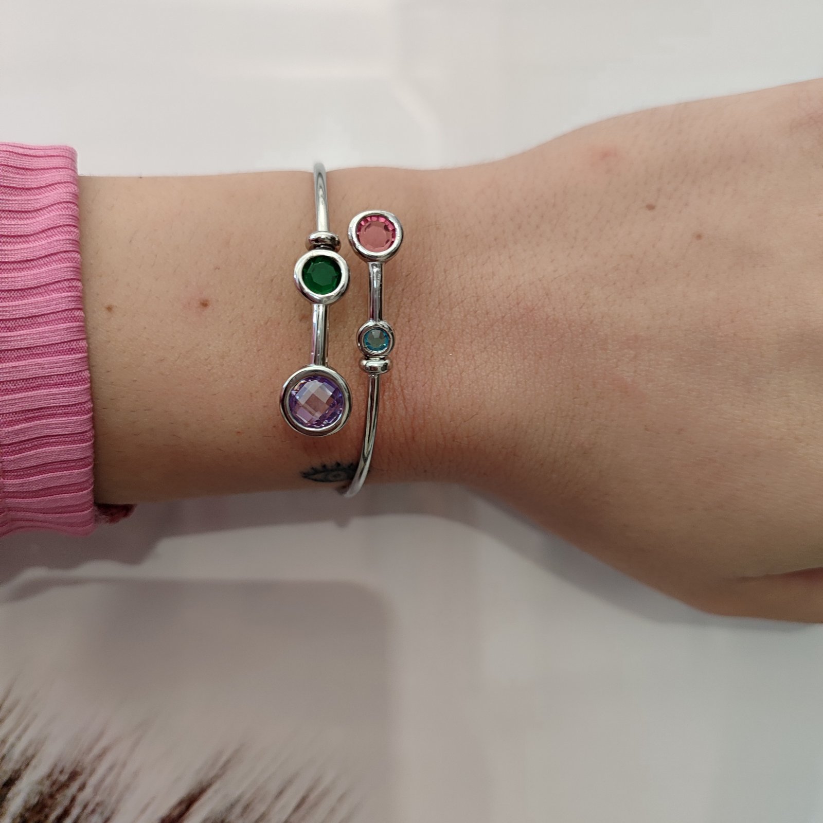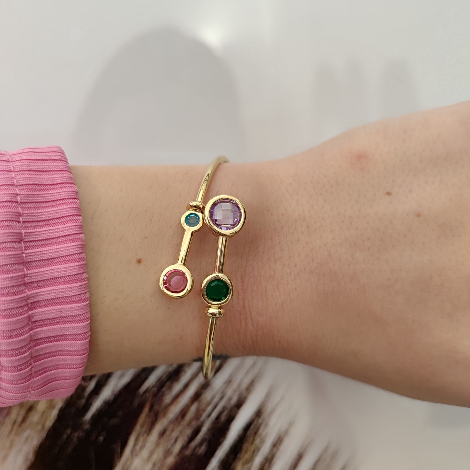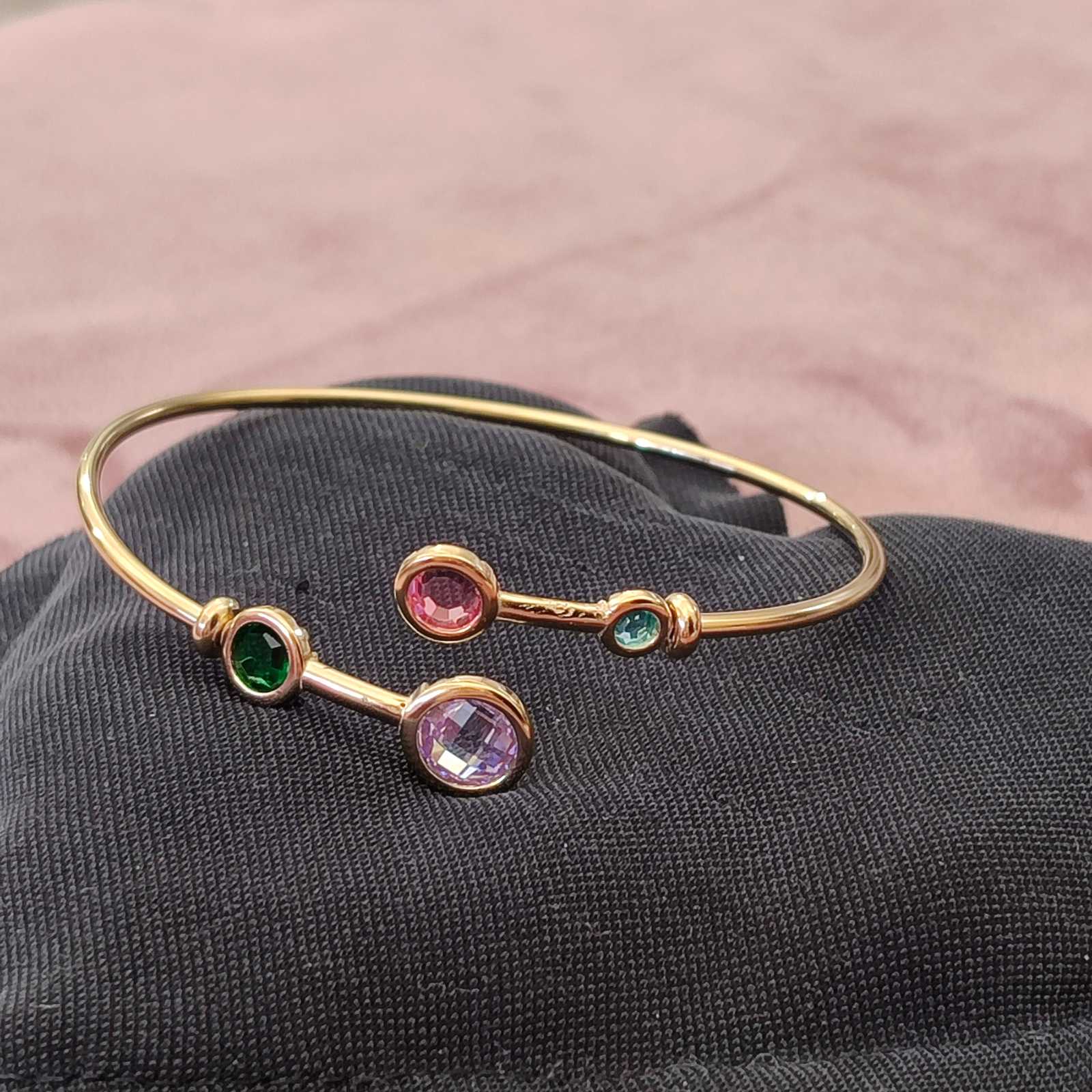 Ατσάλινο βραχιόλι-χειροπέδα με πολύχρωμες πέτρες σε 2 αποχρώσεις χρυσό και ασημί. Δεν προκαλούν αλλεργίες και δεν μαυρίζουν.