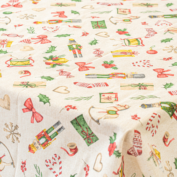 Χριστουγεννιάτικο τραπεζομάντηλο με φιόγκους και καρυοθραύστες 140x180cm.